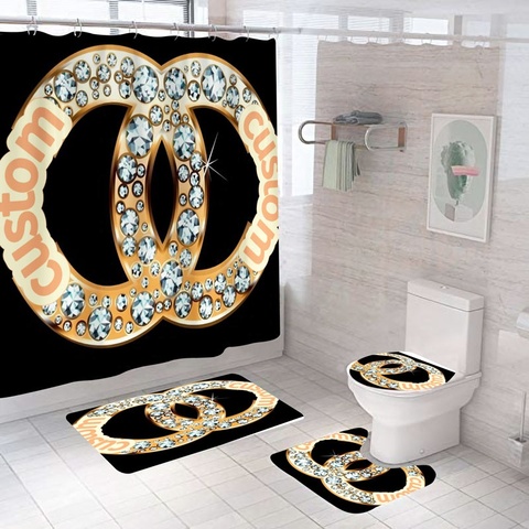 סיטונאי יוקרה מותג אופנה מפורסם מעצבים יוניסקס בד 3 וילונות אמבטיה 4 יח 'מחצלת סט עבור חדר אמבטיה להתאמה אישית